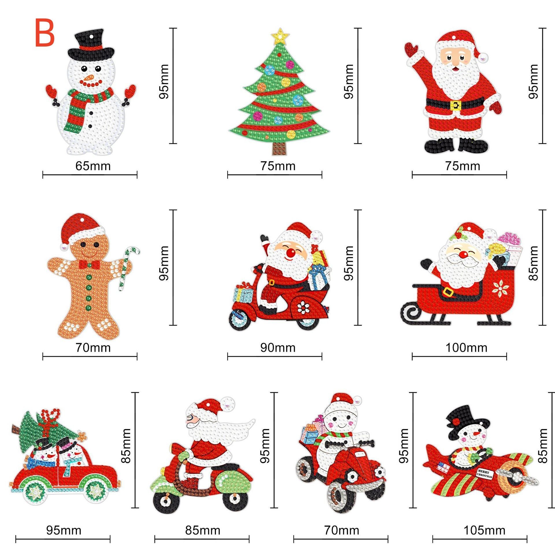 10pcs DIY Diamond Painting Christmas Decorations Xmas Tree Pendant Hanging Ornament Santa Claus Pattern Mosaic Kit Navided Decor