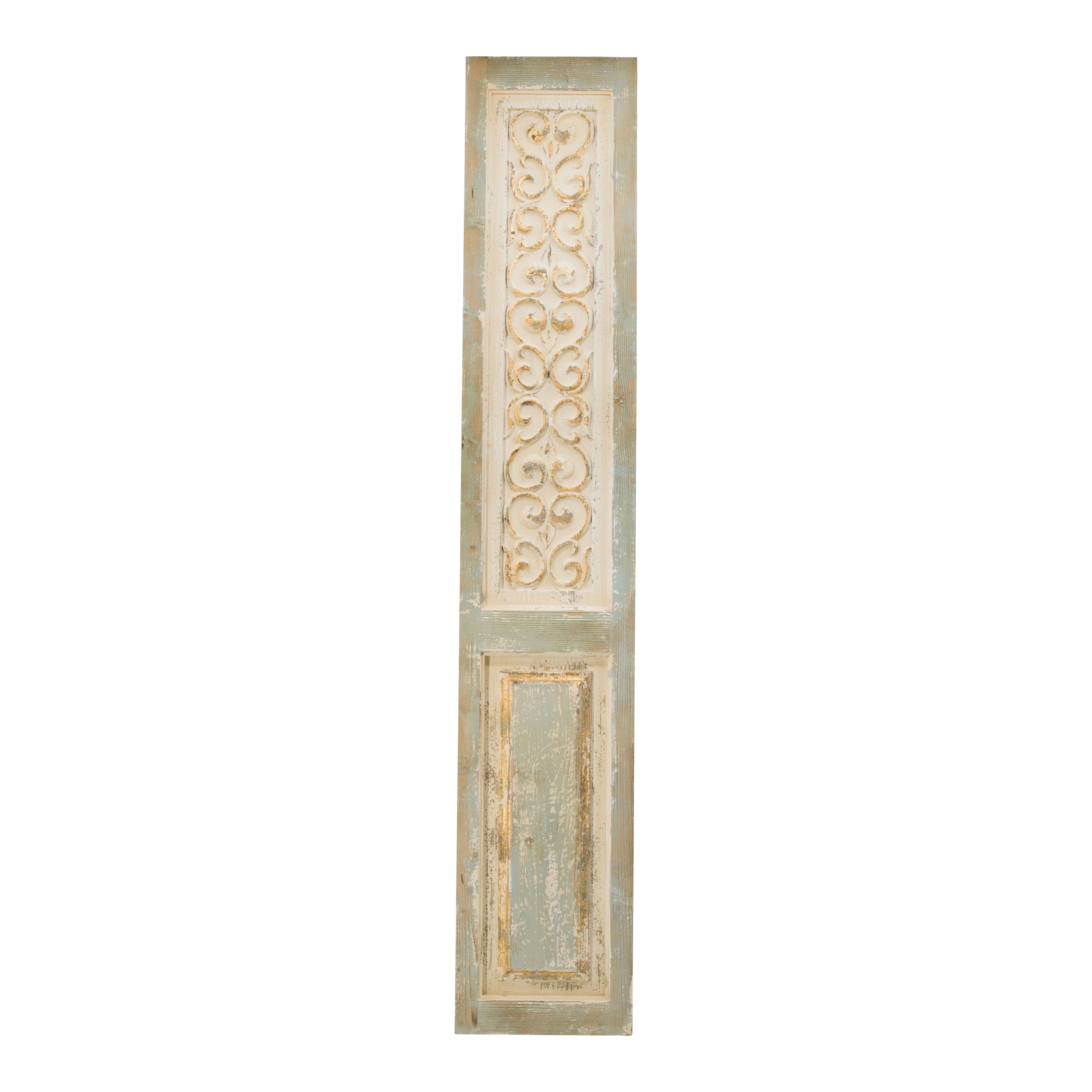 Description:The DesignPerfect for decorative large wall spaces, this decorative wood panel features intricate scroll detail in a washed white and light blue finish. Classic design offers your home a traditional touch.