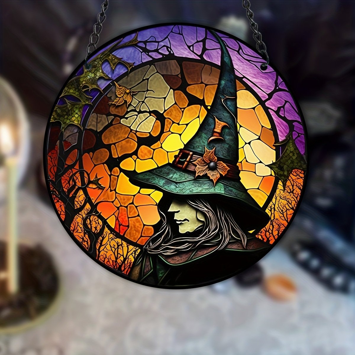 Home > 1pc Halloween Crow Witch Decoration Crafts,Fall Crow Witch Stained Suncatcher Black Bird Decorative Window Hanging Ornament, Stained Suncatcher
