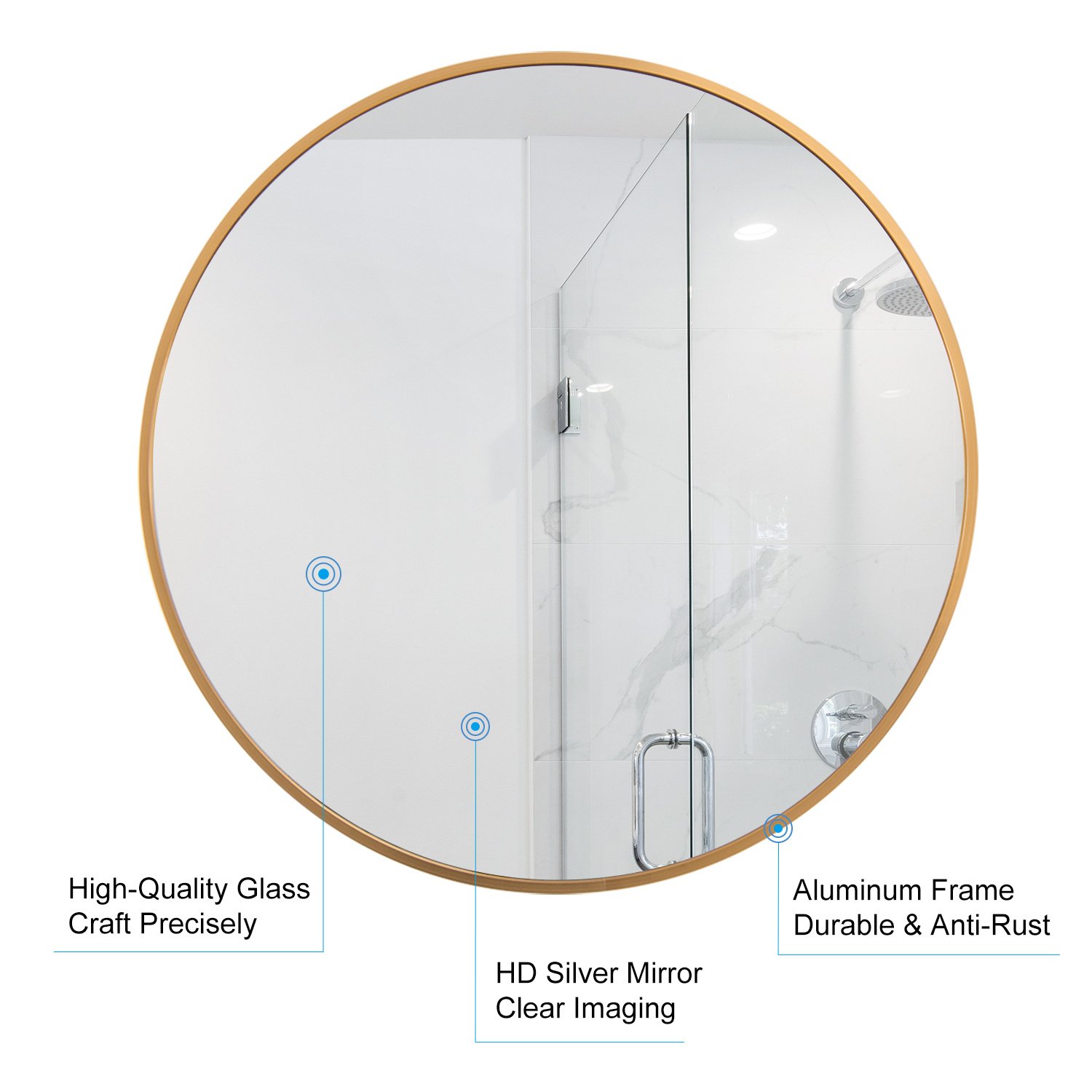 Modern and Simple design: Diameter of this classic metal frame circle mirror is 24 inch with an alloy metal sleek frame; floating round glass panel