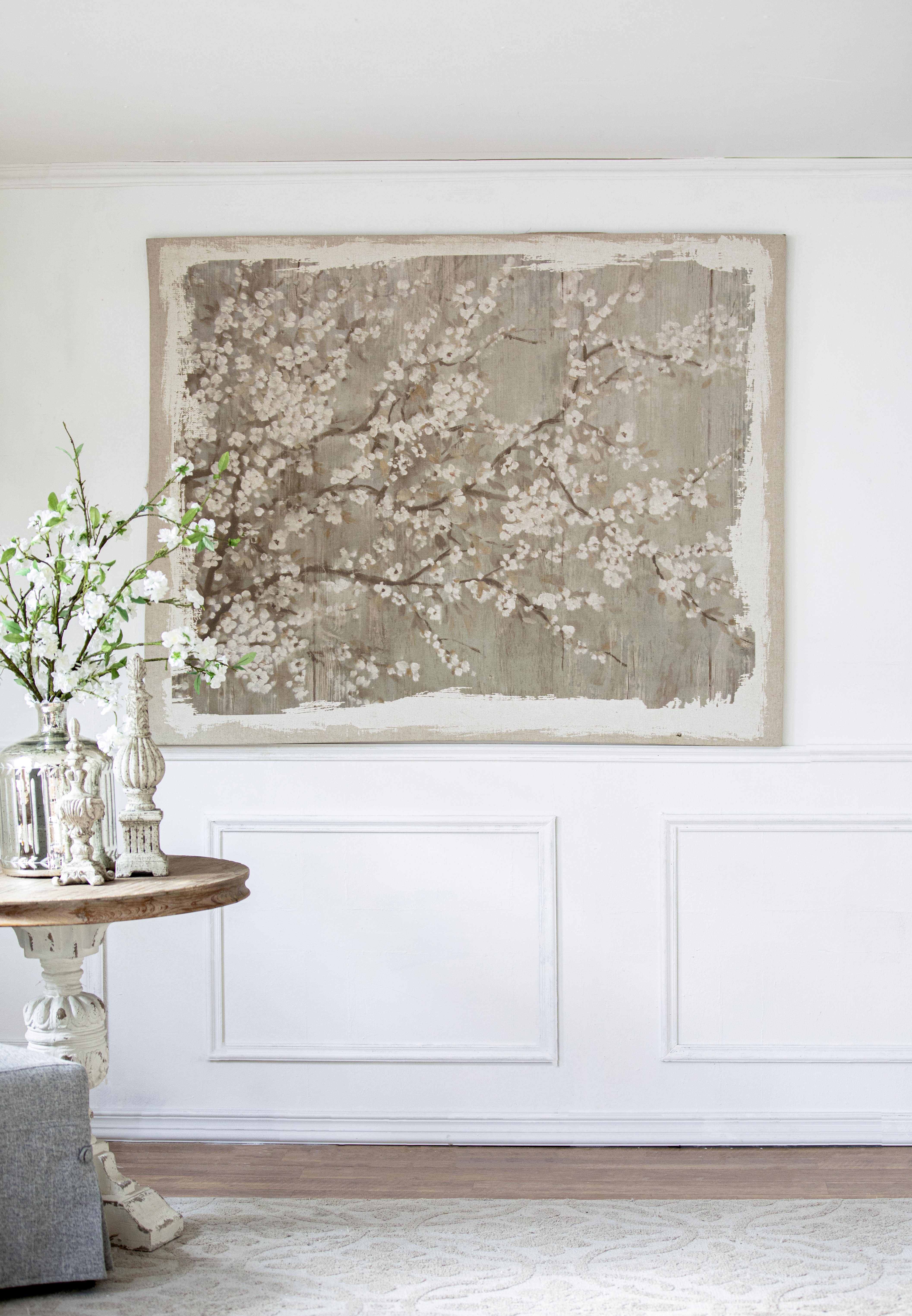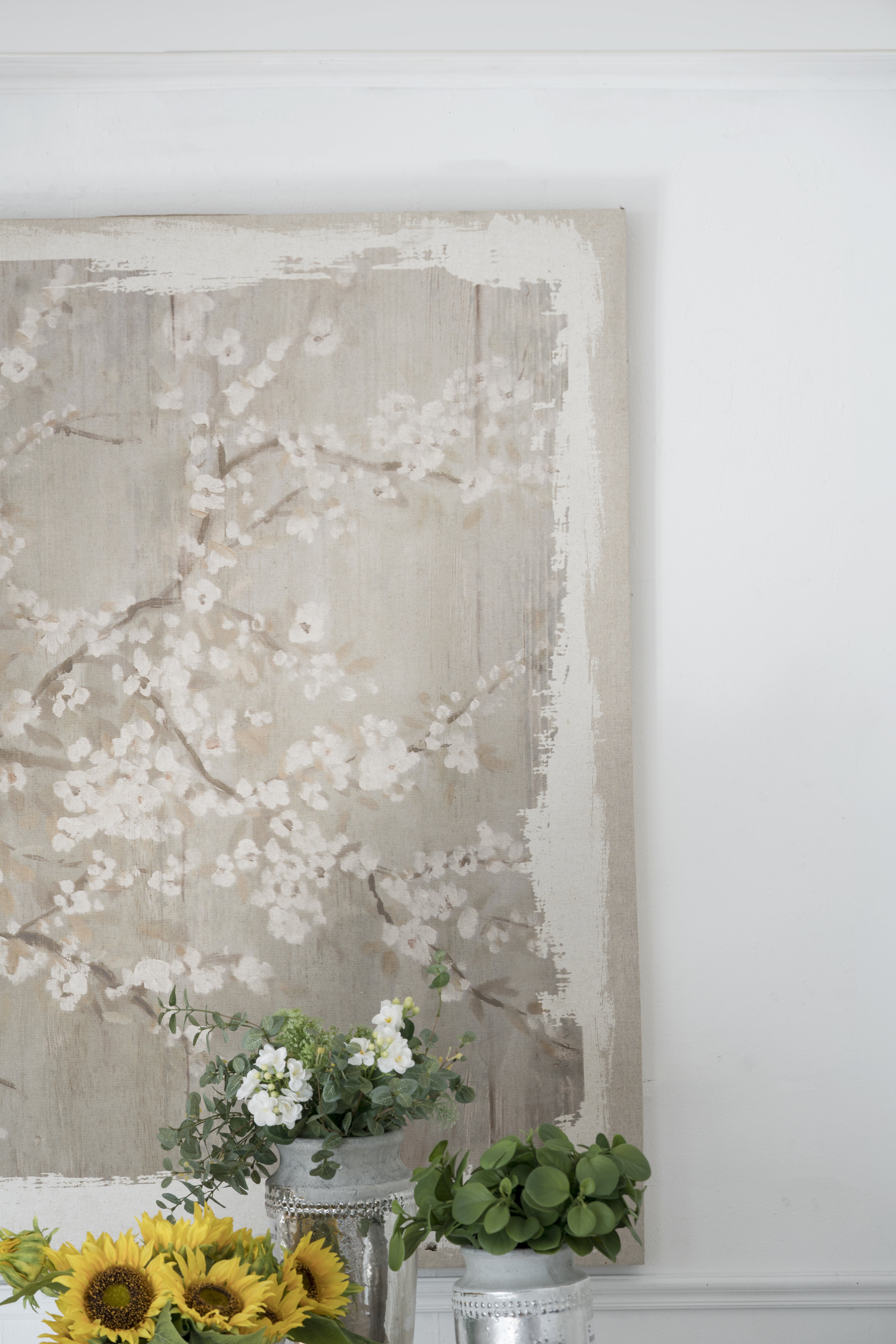Description:The DesignLet the soft, luminous beauty of this cherry blossom print carry the imagination away with its wispy grace and charm. This piece will serve as an intriguing focal point in your living room, bedroom, or office. Completing the alluring visuals, the neutral blend of white and gray tones reflects the calming aura of nature while also allowing the canvas to complement most interior styles.