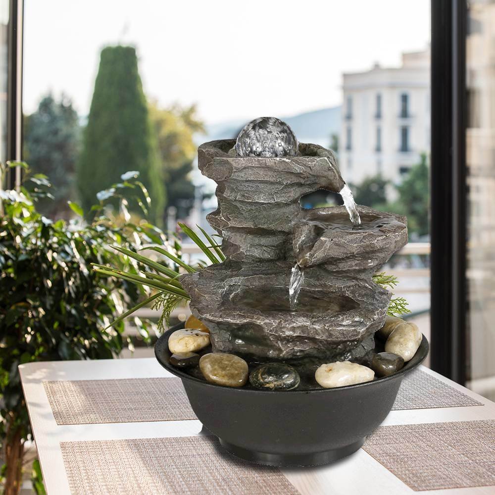 Home > 9.84inches Cascading Resin-Rock Falls Tabletop Water Fountain with LED Lights&Ball, Indoor Oudoor Decorative Tabletop Fountain for Stress Relief