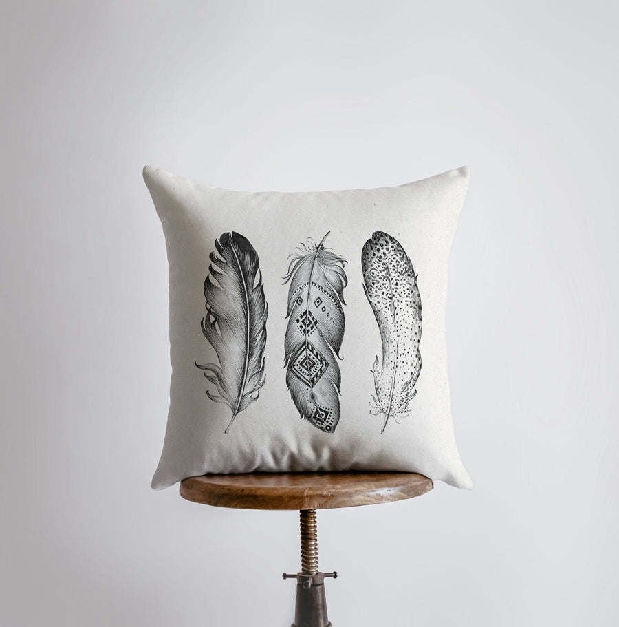 Feathers | Pillow Cover | Owl Drawing | Throw Pillow | Home Decor | Wilderness | Owl | Country Decor | Aesthetic Room Decor | Gift For her