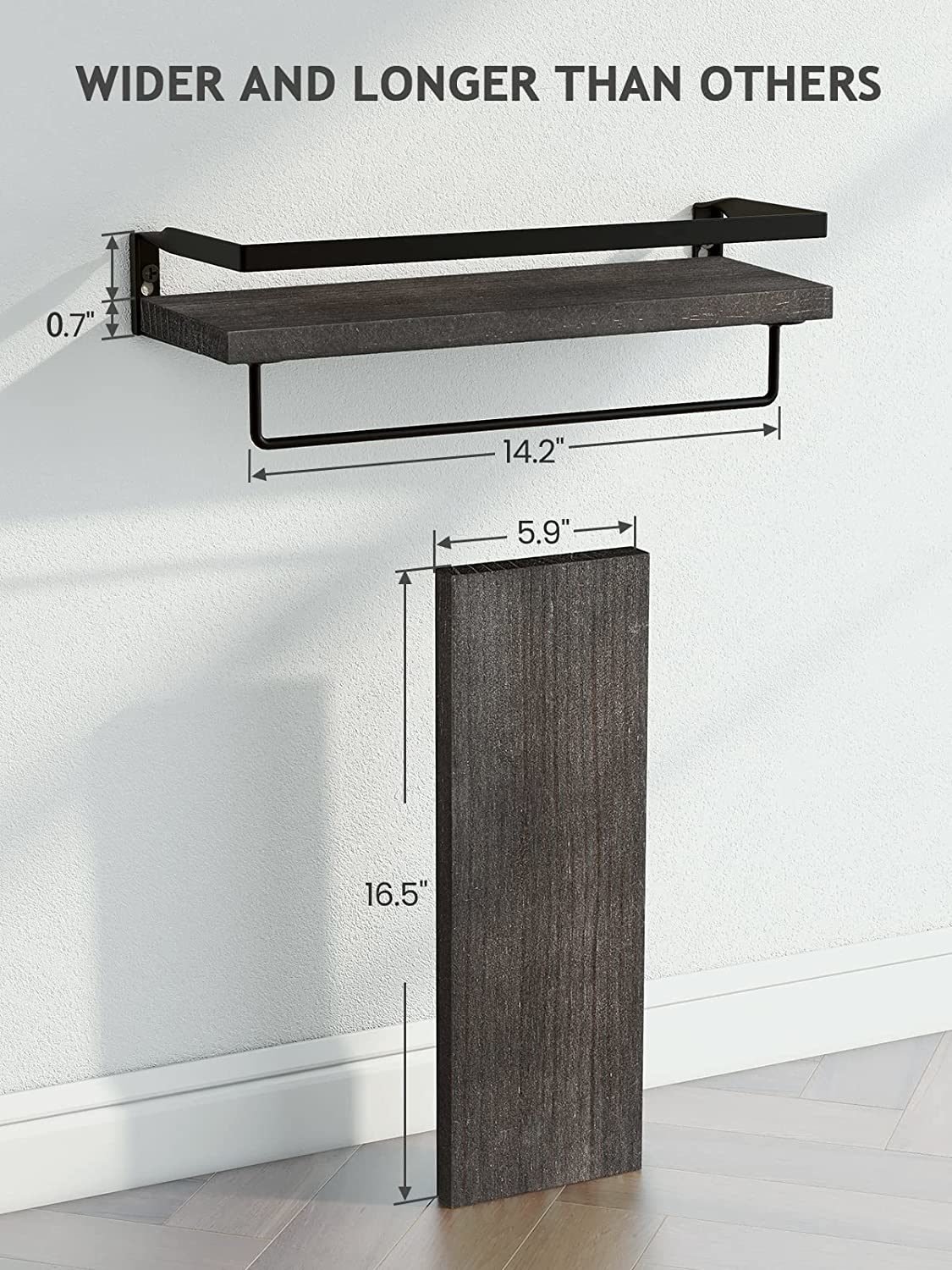 Floating bathroom shelf with towel rail; bathroom/living/kitchen/bedroom wall shelf set of 2; light brown; dark brown; black.