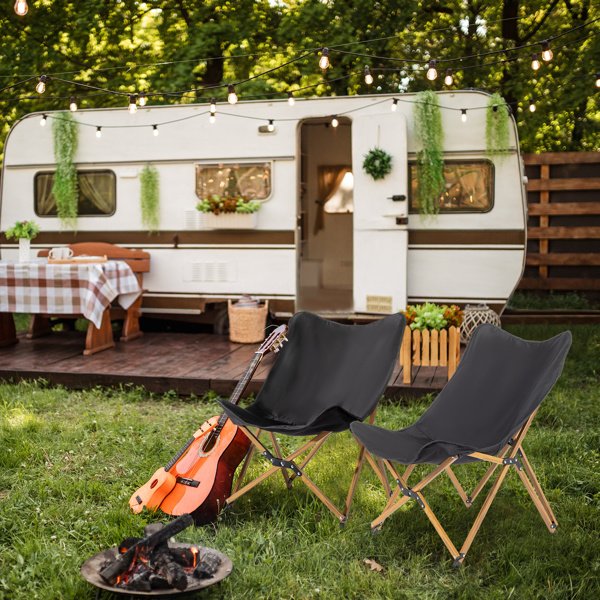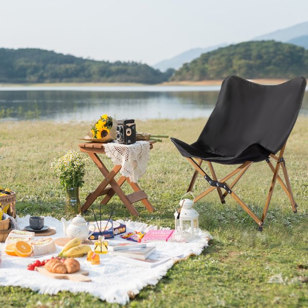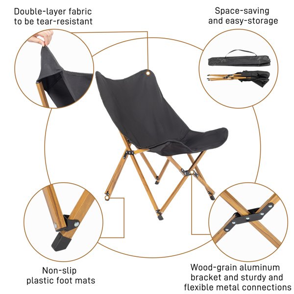 Home > Folding Outdoor Camping Chair; Portable Stool for Fishing Picnic BBQ; Ultra Light Aluminum Frame with Wood Grain Accent; Black