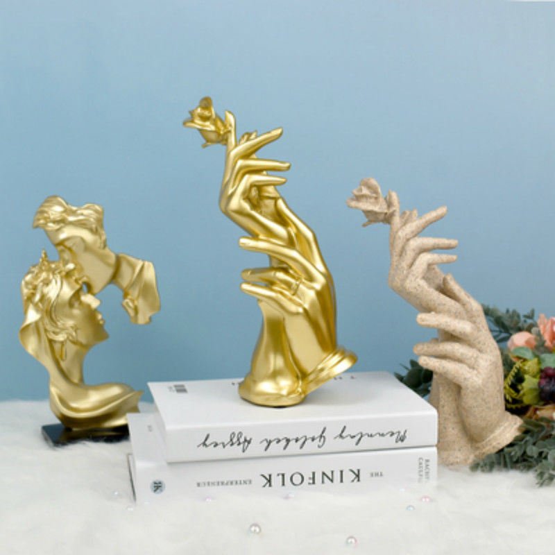 Home > Home Decoration Resin Sculpture Statue Living Room Wine Cabinet Modern Fashion Hand-held Rose Ornaments Golden Crafts Gift