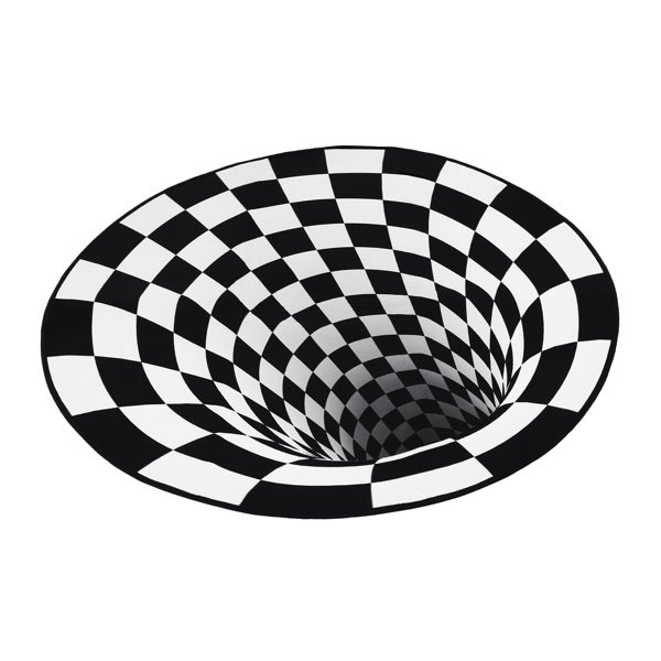 AMAZING DESIGN: This Velvet Rug Uses an Illusion Away and Black and White Plaid Design, Making You Feel Like You Are in A Black hole. This Will Be the Most Eye-catching Design Decoration in Your Home. Your Friends and Guests Will Remember it.STRONG AND DURABLE BACKING: Have peace of mind knowing that even in high-Trafficked areas of your home, this area rug was designed to last for years to come! And even after vacuuming, the carpet fibers stay upright and fluffy. They can keep their shape. The round rug is made of polyester fiber material and non-woven fabric at the bottom and does not hurt the floor.ENVIRONMENTAL PROTECTION: The round rug features full color, no fading, no pilling, and more convenient to use.Easy to Care: The bedroom rugs are very easy to clean. Just add some mild detergent and gently wash the carpet by hand. Then put the rug in the ventilation to dry. Please do not expose it to the sun.SUITABLE FOR ANY ROOM: The floor carpet is suitable for the living room, bedroom, dining room, nursery, entrance hall, home, and office. Different sizes to choose from.