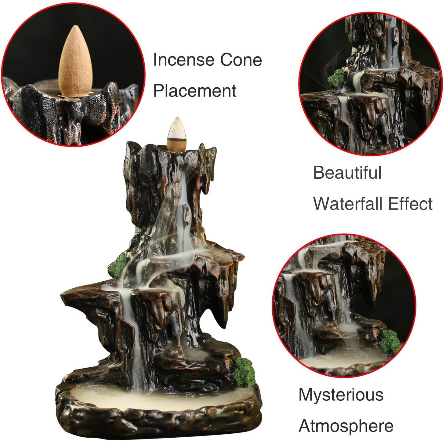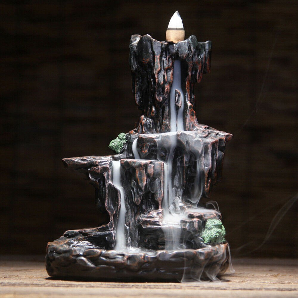 Home > Resin Mountain Waterfall Backflow Smoke Incense Burner Censer Holder Free 100 Cones