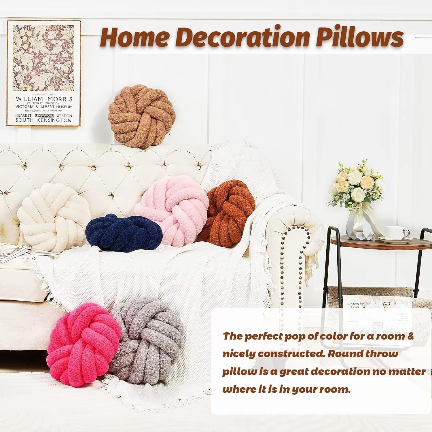 1.Fun Decoration: The perfect pop of color for a room & nicely constructed.Whether the round knot ball pillow is on your sofa, couch, bed, in the office, kids room,nursery,dog bed,Floor or outdoors (patio, car, etc.), these pillows are great decor