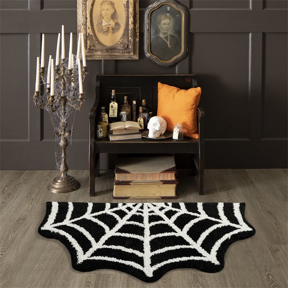 Spider Web Indoor Halloween Rug Plush Gothic Bathroom Mat, Non-Slip