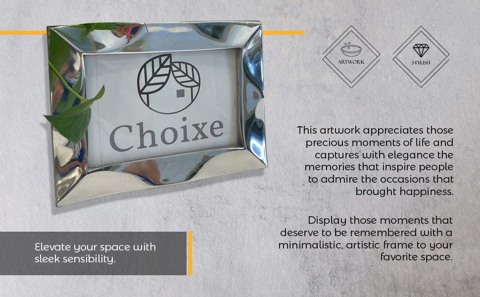 Our astonishing tabletop picture frame reflects a unique lifestyle at home. The handcrafted making process gives each frame simplicity and a singularly stylish element that brings light to any space.This artwork appreciates those precious moments of life and captures with elegance the memories that inspire people to admire the occasions that brought happiness.Display those moments that deserve to be remembered with a minimalistic; artistic frame of your favorite space.CRAFTSMANSHIP. Each piece is made at a time using expertly processed recycled aluminum alloy; finishing with multi-step polishing creating a piece of artwork with a balance of functionality and modern design.ECO-FRIENDLY. A sustainable product made of recycled aluminum which is a process that helps reduce energy usage during the making while decreasing landfill waste.MINIMALIST DESIGN. Simplicity; clean lines; monochromatic accent; and contemporary styling make this picture frame essential for modern decor. Elevate your space with sleek sensibility.Orientation: Vertical or horizontal; includes a wood holder per image.Photo protector material: Glass.Frame dimensions: 8.6in x 6.7inPhoto dimensions: 6.5in x 4.5inWeight: 1.8 lbs.