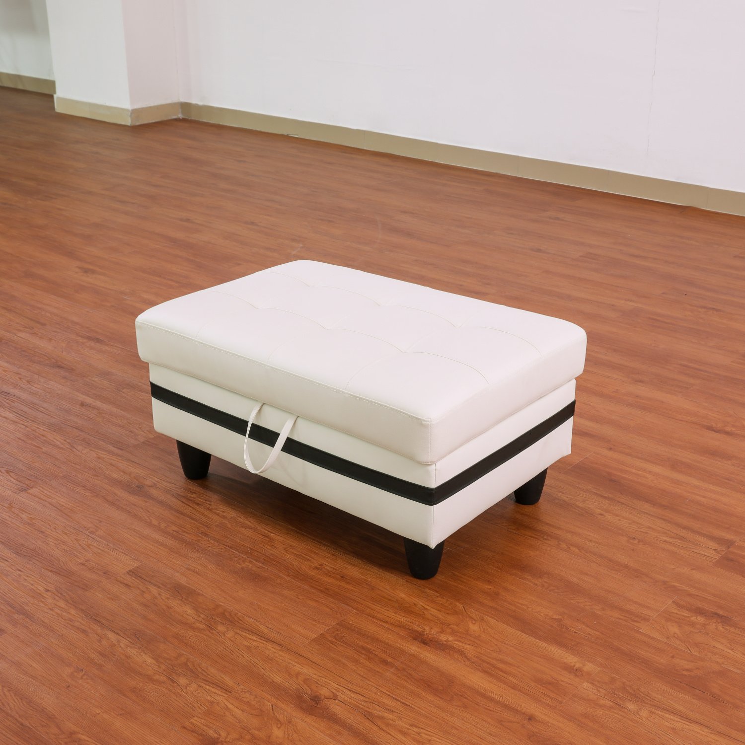 Home > White And Black Semi PU Synthetic Leather Storage Ottoman