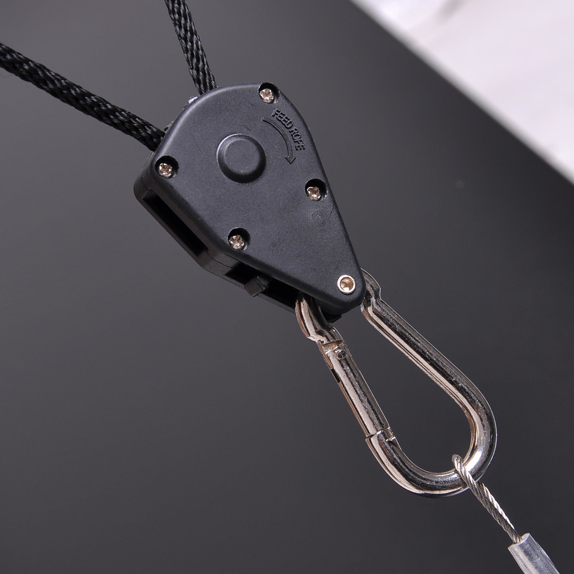 Features: With high-quality durable Polypropylene Rope. Made with special heat and cold resistant composite material. Rope Ratchet can pull the rope tight and lock it in place. One Locking Latch for hanging the reflector, the other one to connect the hanger to the ceiling. Up to 150 lbs / 68 kg weight load capacity per pair. Adjust the height of reflector easily. To provide reliable support & befitting distance from plants with tension mechanism. Compatible with all parabolic and round reflectors, so long as hooks and locking latch suit.Hanger Size: 3" x 1-1/4"Maximum Extension Length: 7 FeetPerfect for hanging reflectors, light fixtures, carbon filters and ventilation equipment.